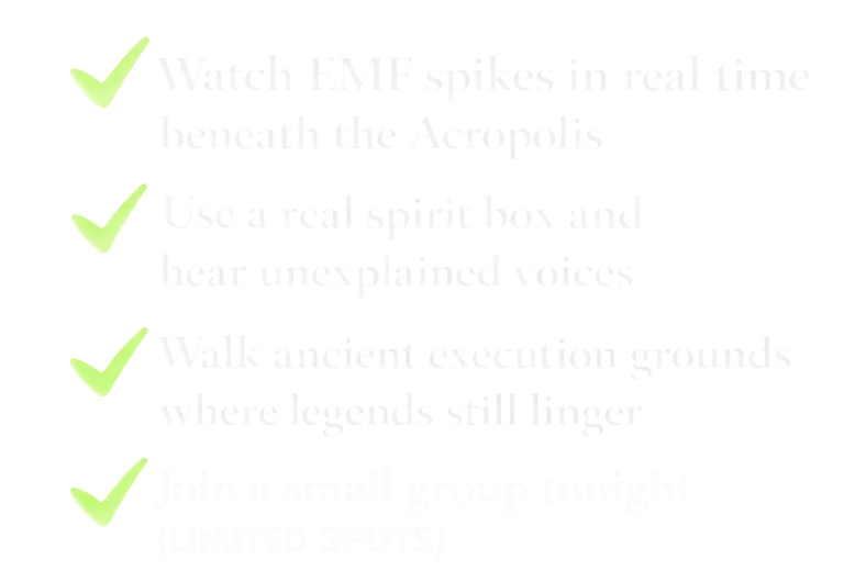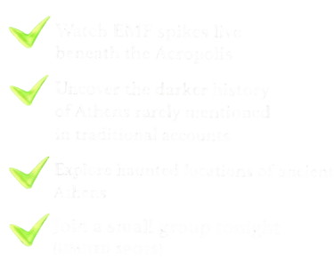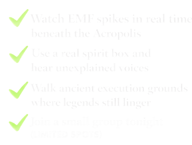 Join us for a thrilling haunted tour exploring Athens' dark past, filled with chilling stories of death, murder, and ancient rituals. We will meet in the front of the Thision Open Air Cinema on Apostolou Pavlou Street.